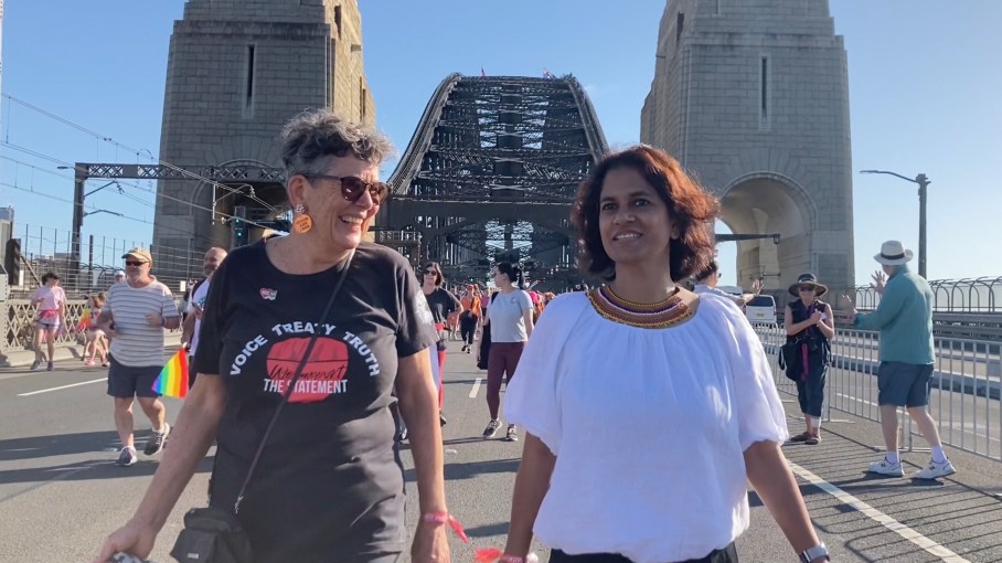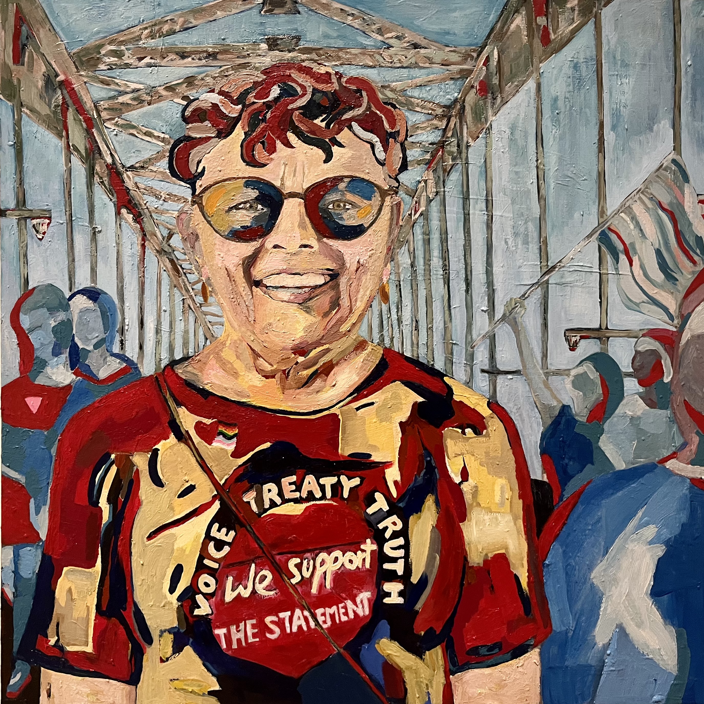 She is an advocate for change in the LGBTQIA+ community. This portrait shows Mary walking across the Harbour Bridge during Sydney World Pride Bridge Walk, in 2023. Mary is also a key subject of a locally produced documentary by Frogmouth Films,